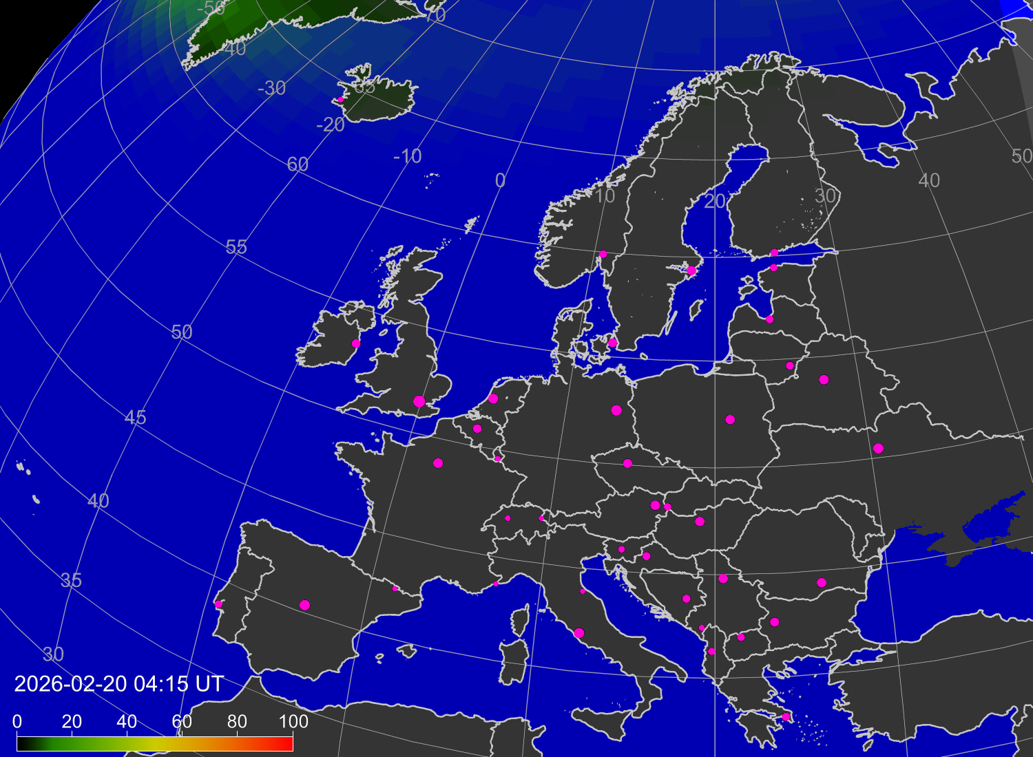 Вероятность полярных сияний в городах Европы