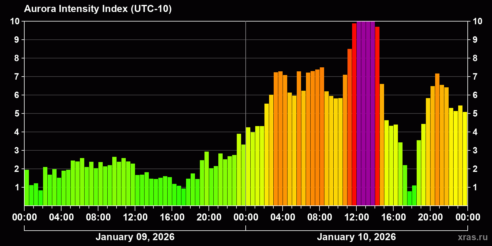 Auroras (northern lights) in Honolulu — Jan 10, 2026