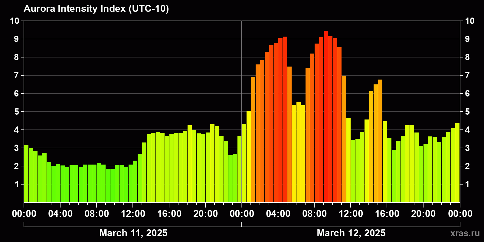 Auroras (northern lights) in Honolulu — Mar 12, 2025