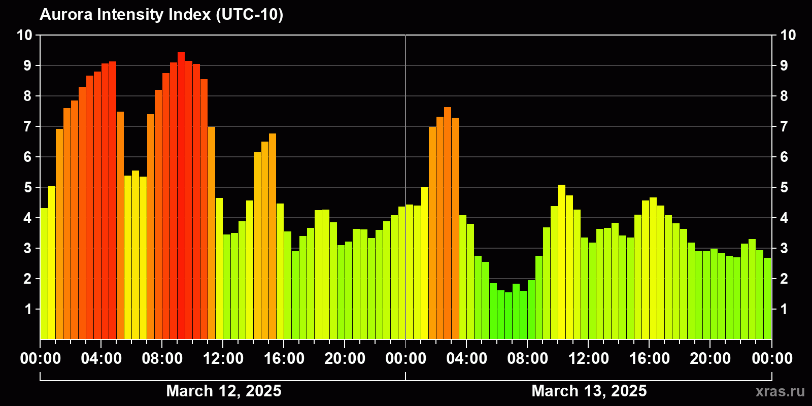 Auroras (northern lights) in Honolulu — Mar 13, 2025
