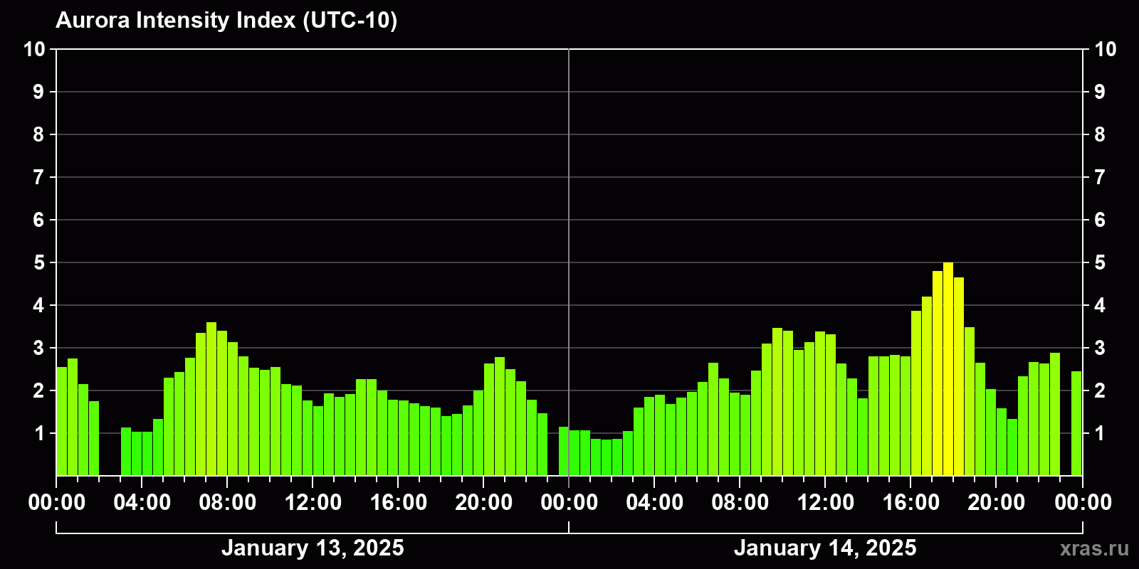 Auroras (northern lights) in Honolulu — Jan 14, 2025