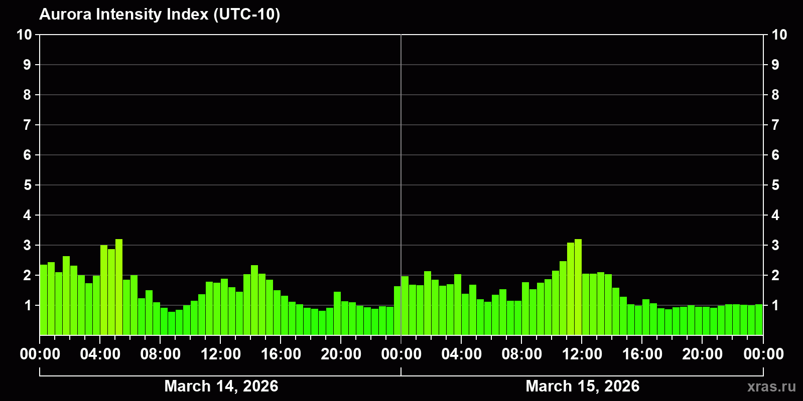 Auroras (northern lights) in Honolulu — Mar 15, 2026