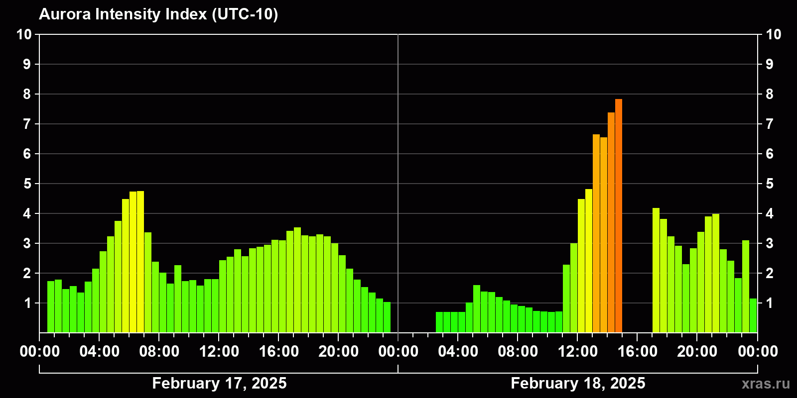 Auroras (northern lights) in Honolulu — Feb 18, 2025