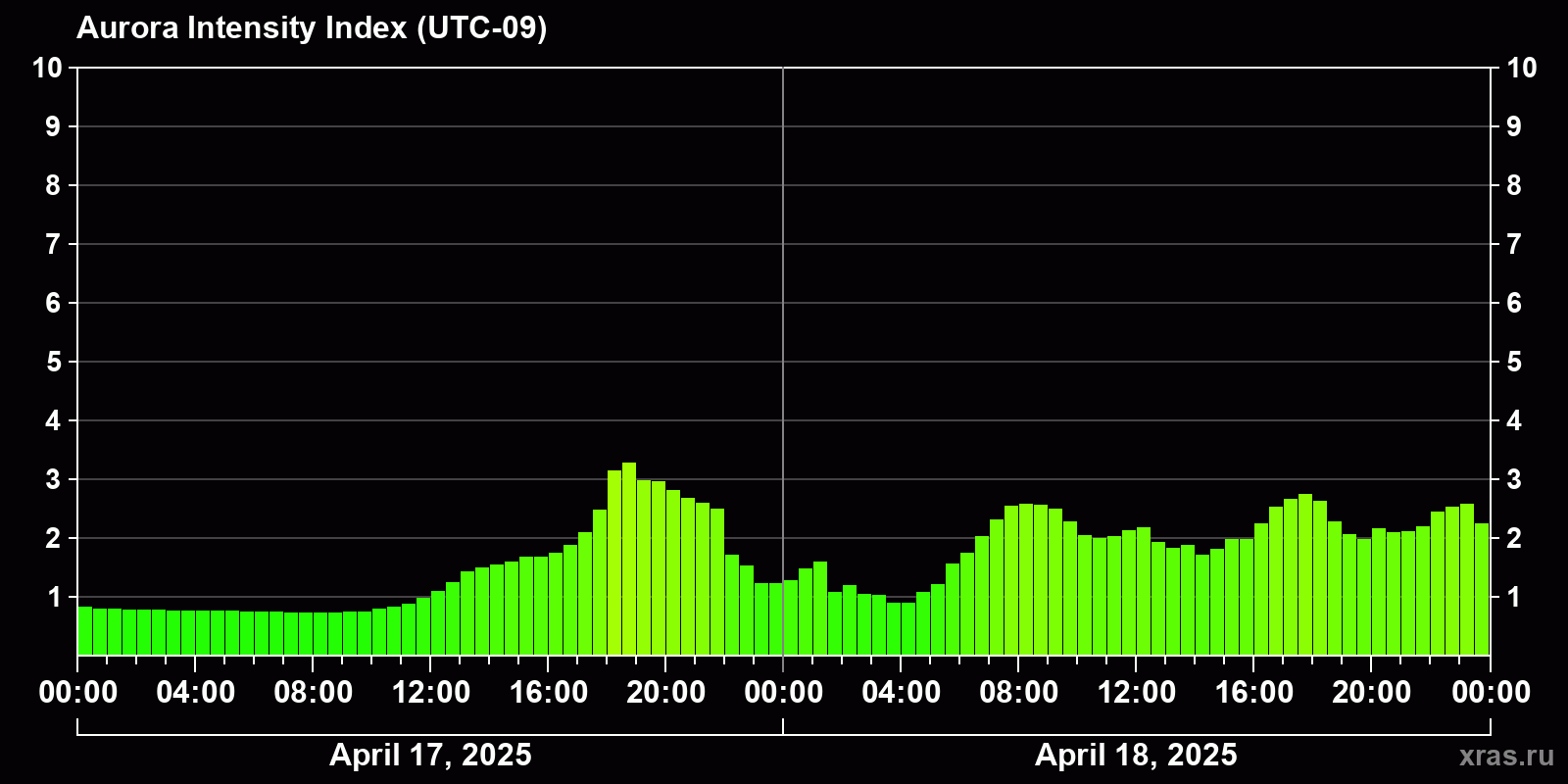 Changes in the auroral intensity index from 2025-04-17 to 2025-04-18 local time