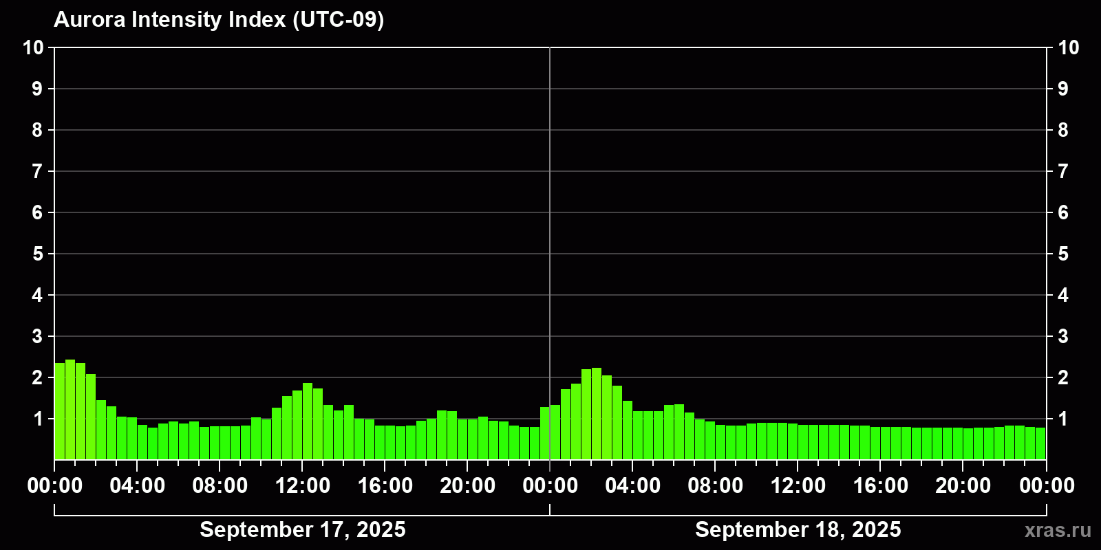 Changes in the auroral intensity index from 2025-09-17 to 2025-09-18 local time