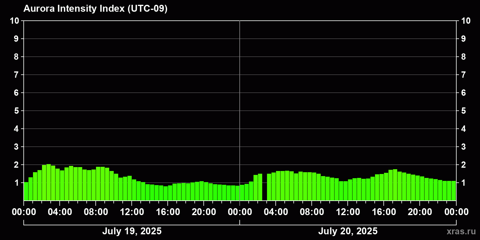 Changes in the auroral intensity index from 2025-07-19 to 2025-07-20 local time