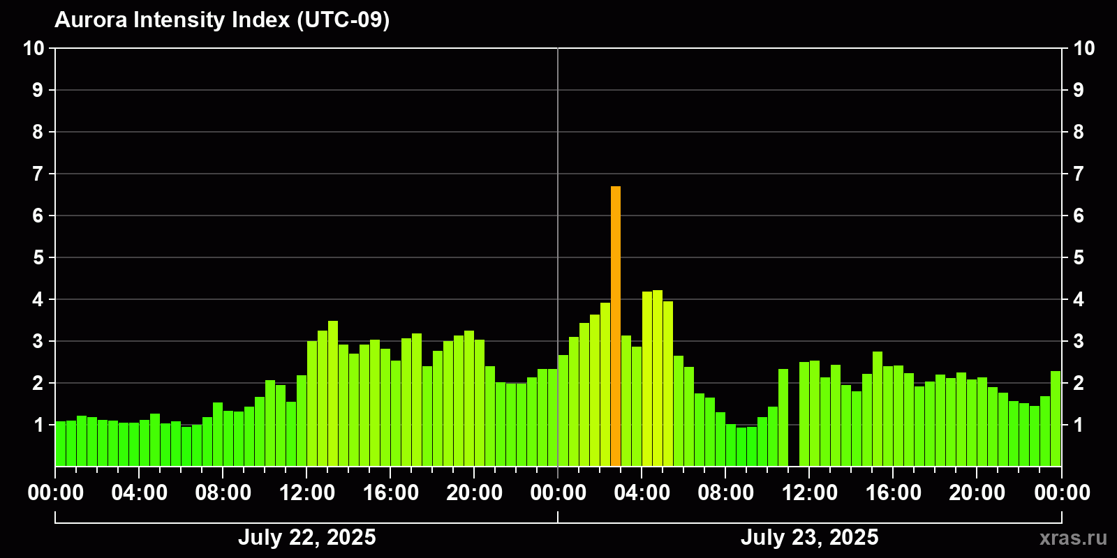 Auroras (northern lights) in Honolulu — Jul 23, 2025
