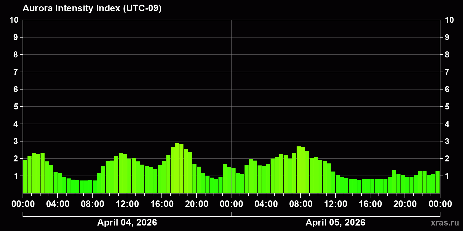 Changes in the auroral intensity index from 2026-04-04 to 2026-04-05 local time