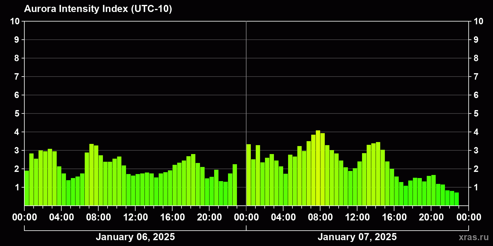 Auroras (northern lights) in Honolulu — Jan 07, 2025