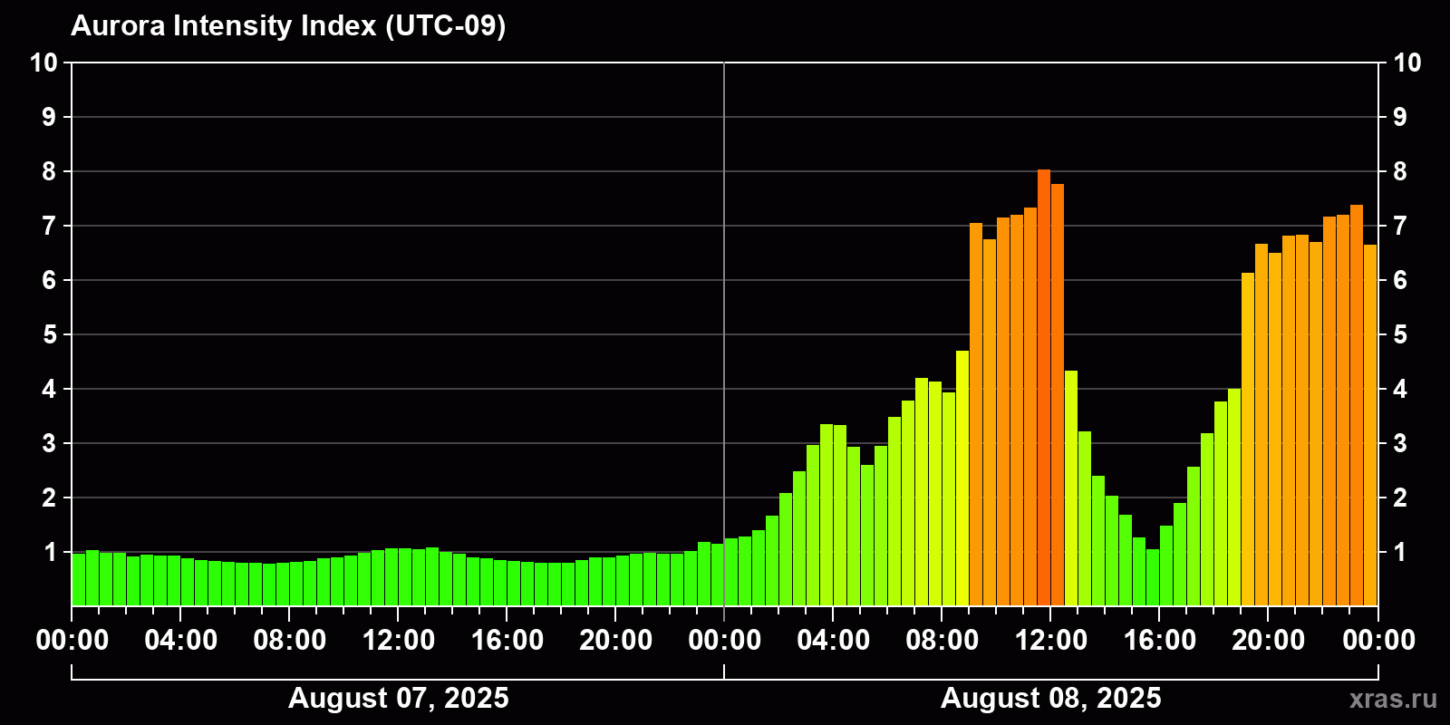 Auroras (northern lights) in Honolulu — Aug 08, 2025