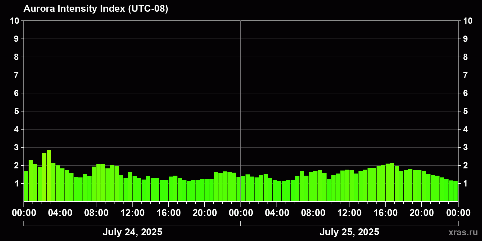 Changes in the auroral intensity index from 2025-07-24 to 2025-07-25 local time