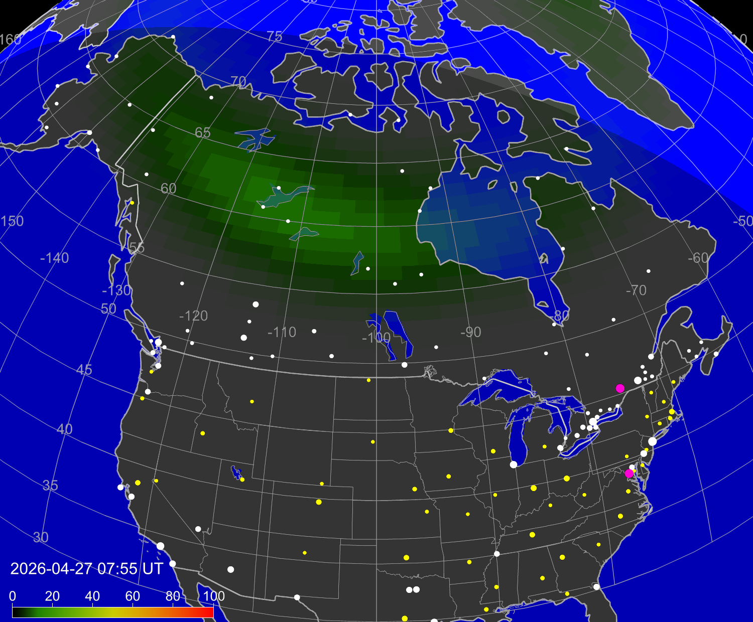 Northern lights (auroras) over North America