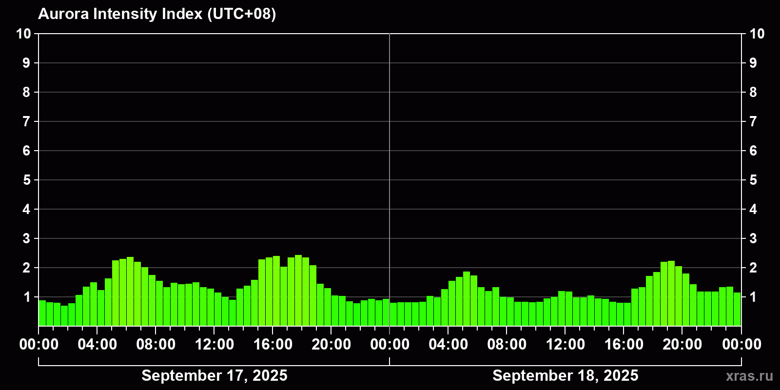 Changes in the auroral intensity index from 2025-09-17 to 2025-09-18 local time