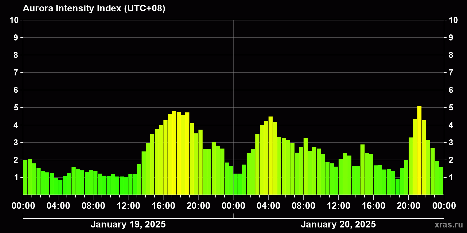 Changes in the auroral intensity index from 2025-01-19 to 2025-01-20 local time