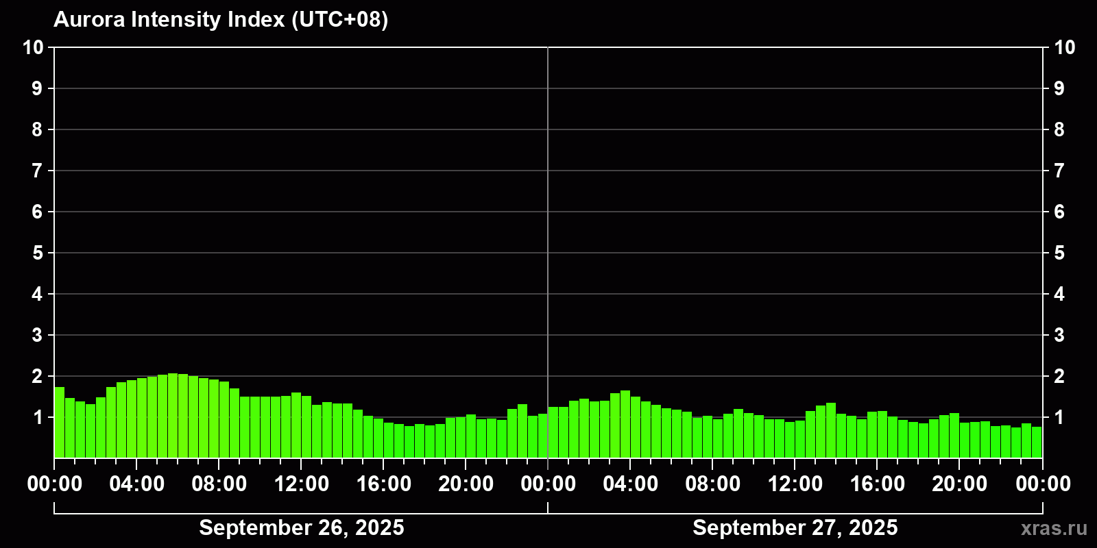 Changes in the auroral intensity index from 2025-09-26 to 2025-09-27 local time