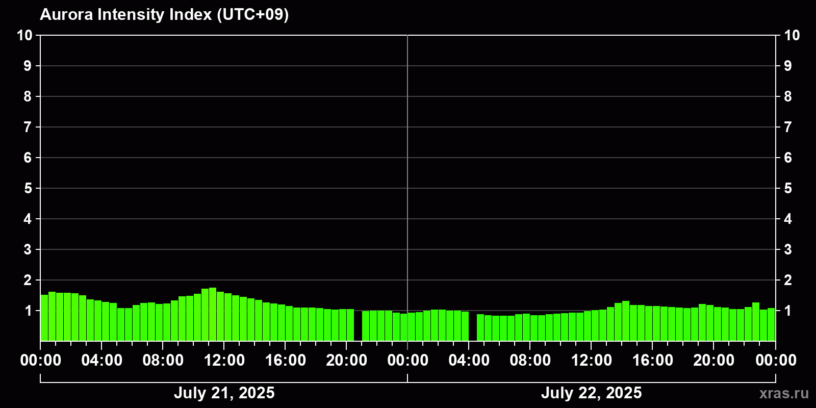 Changes in the auroral intensity index from 2025-07-21 to 2025-07-22 local time
