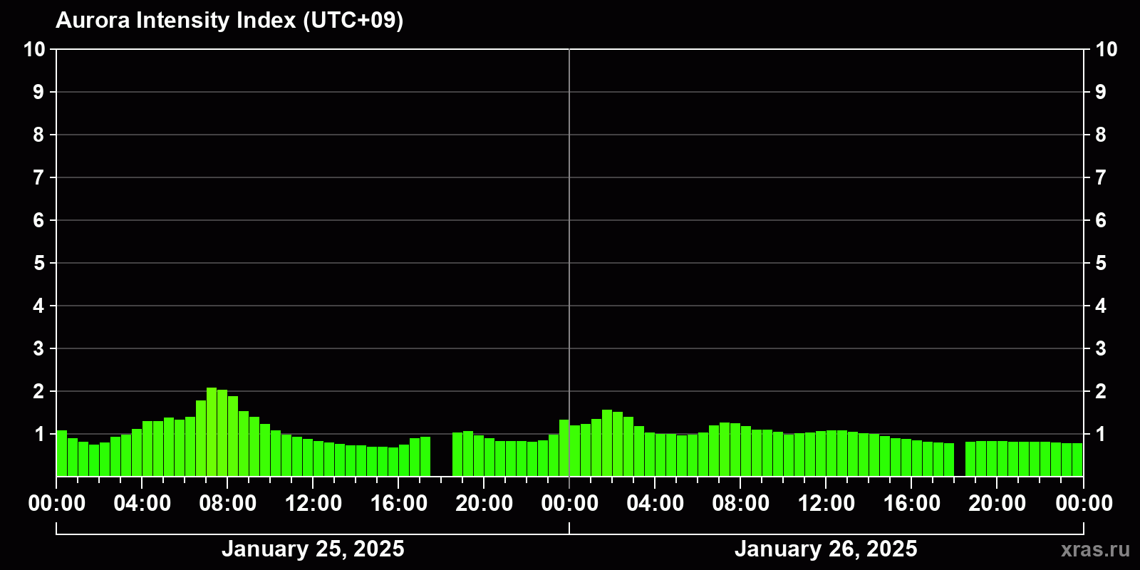 Changes in the auroral intensity index from 2025-01-25 to 2025-01-26 local time