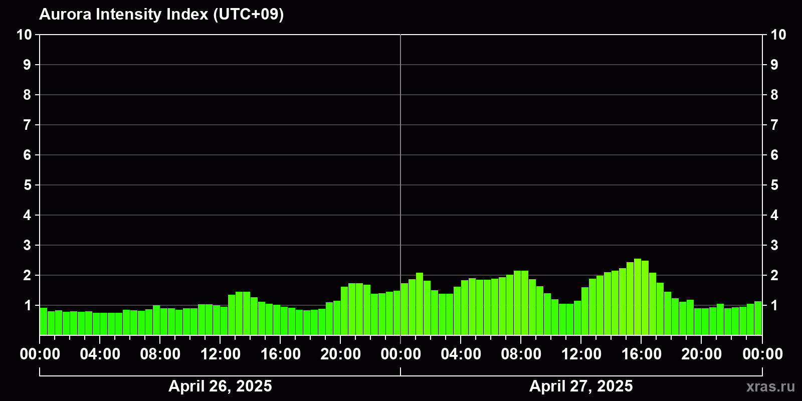 Changes in the auroral intensity index from 2025-04-26 to 2025-04-27 local time