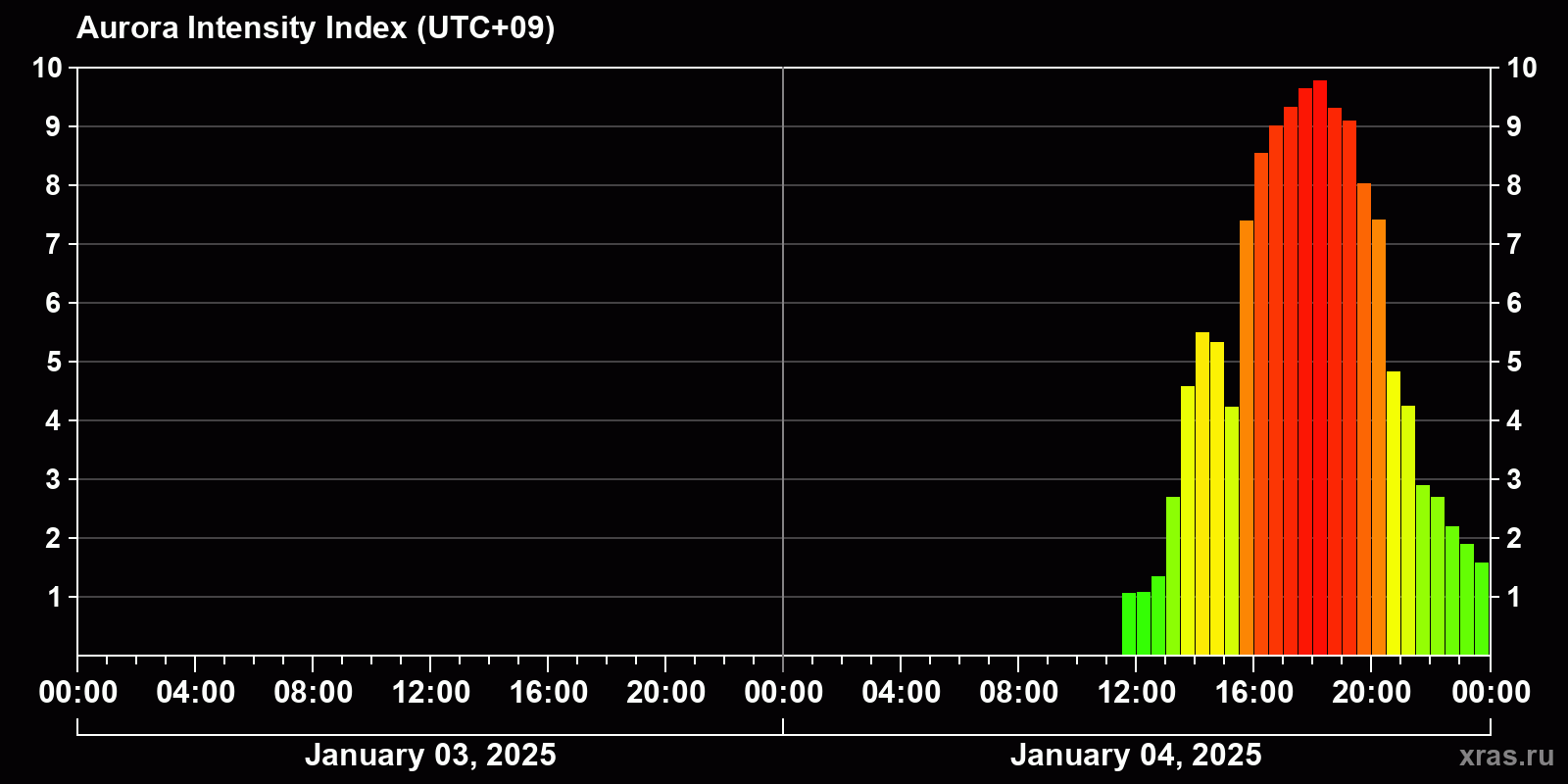 Changes in the auroral intensity index from 2025-01-03 to 2025-01-04 local time
