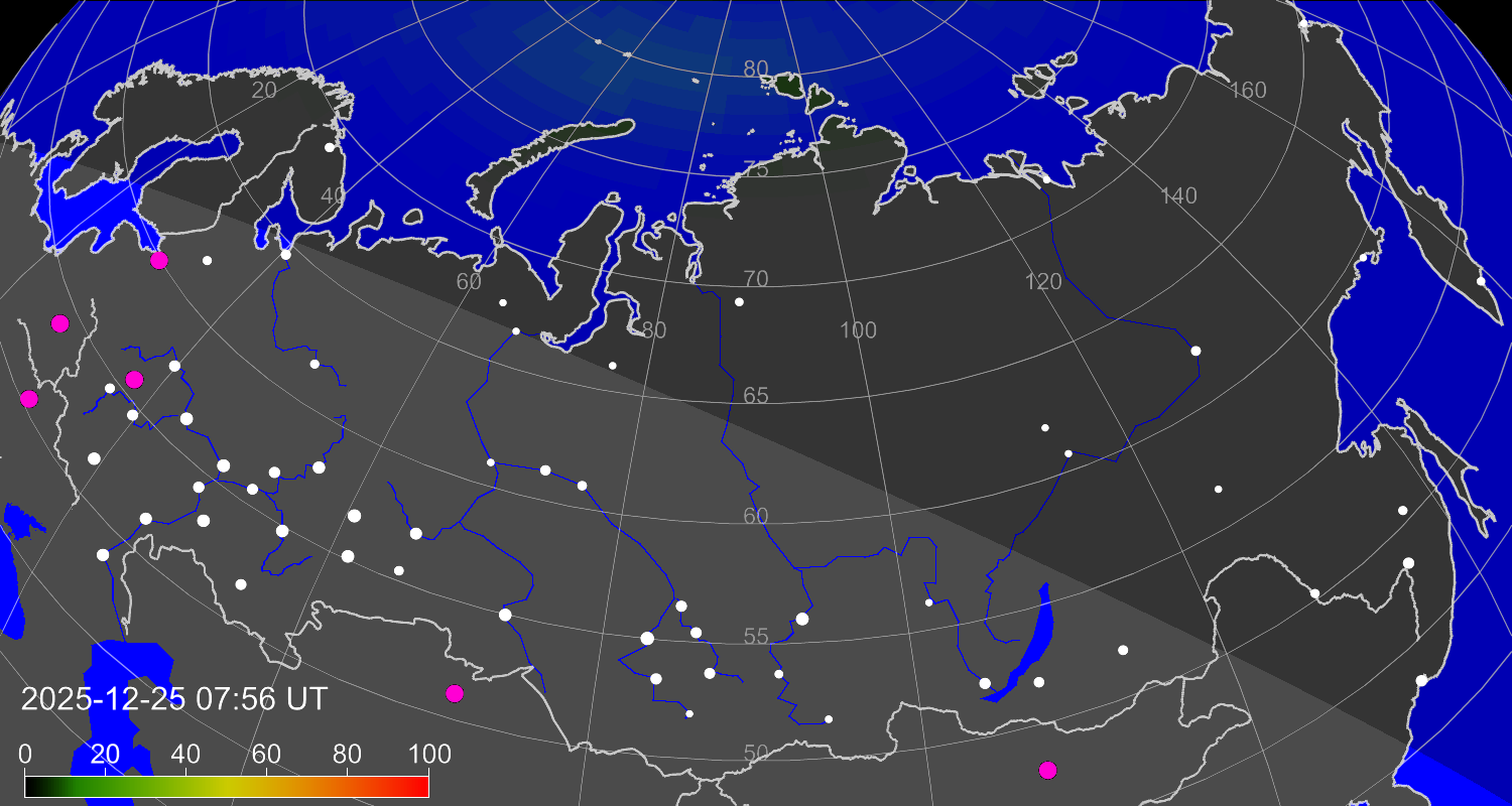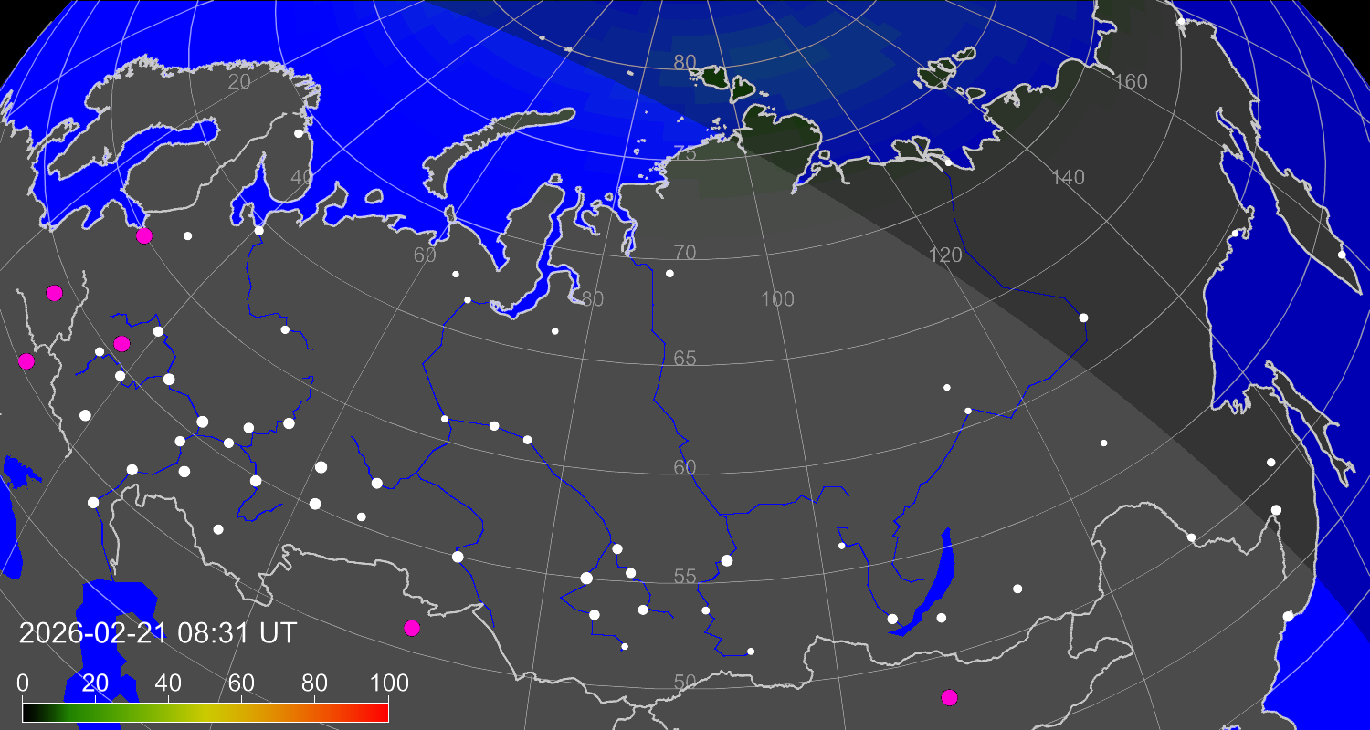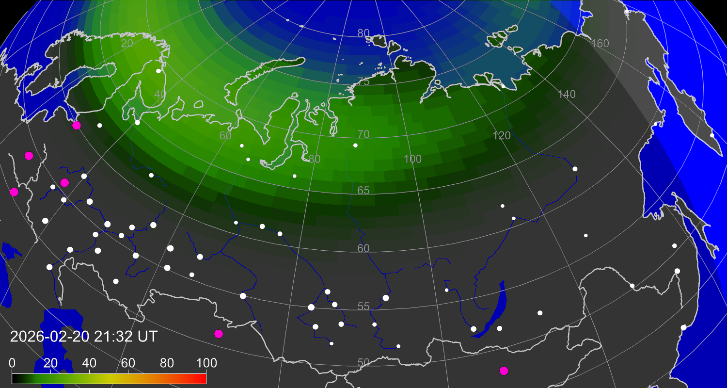 Зона полярных (северных) сияний над территорией Евразии