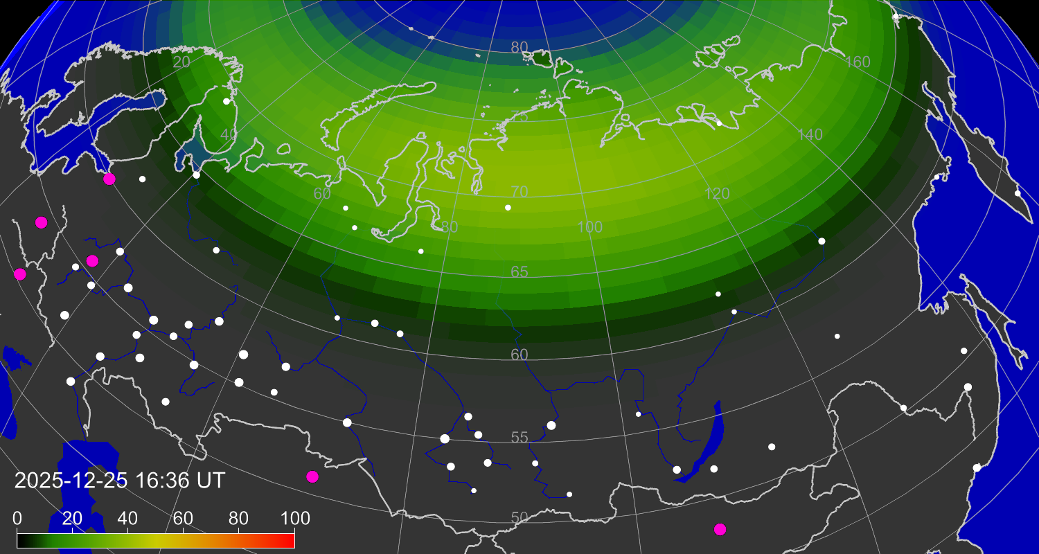 Вероятность полярных сияний в Канкурии
