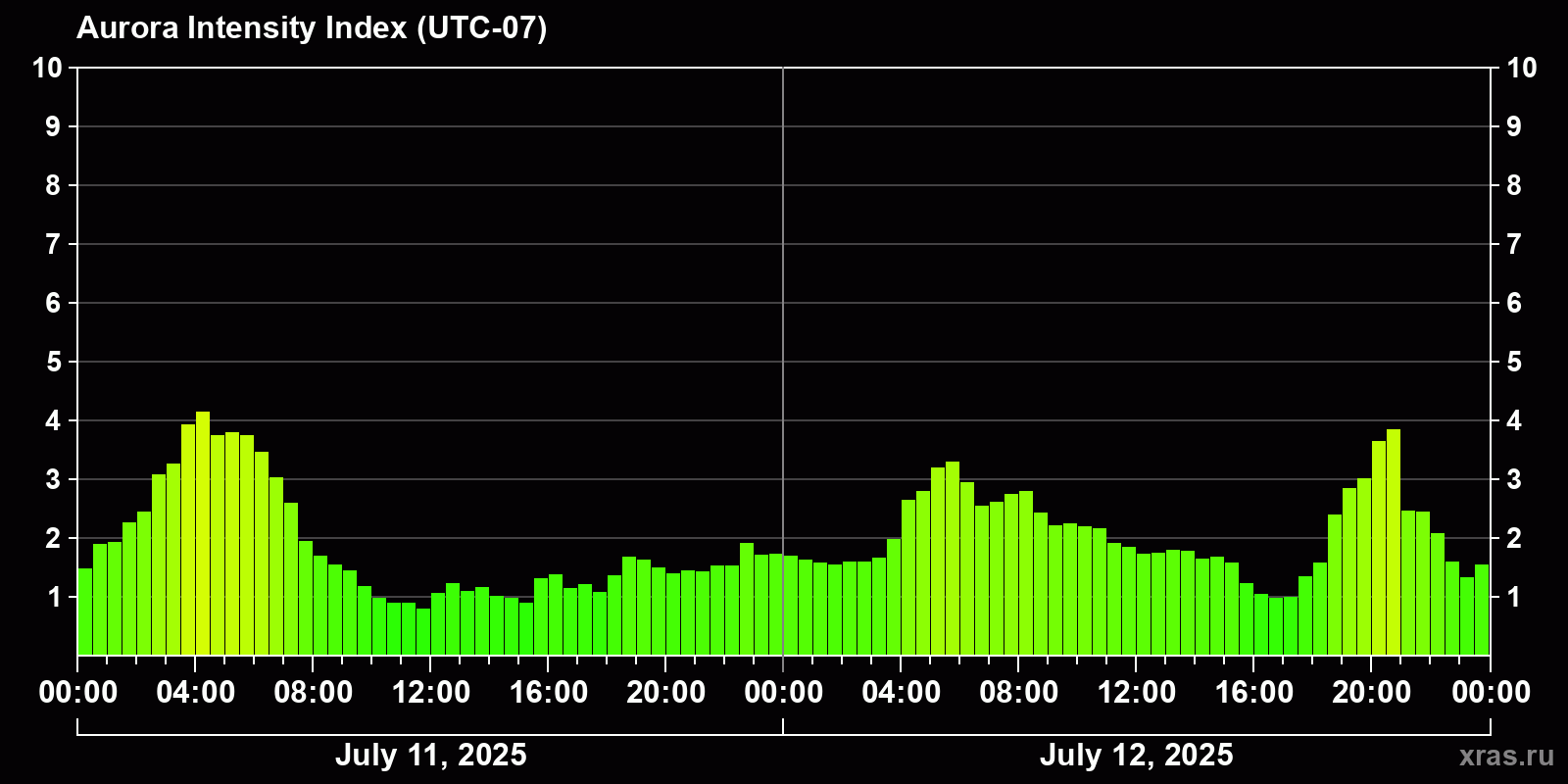 Changes in the auroral intensity index from 2025-07-11 to 2025-07-12 local time
