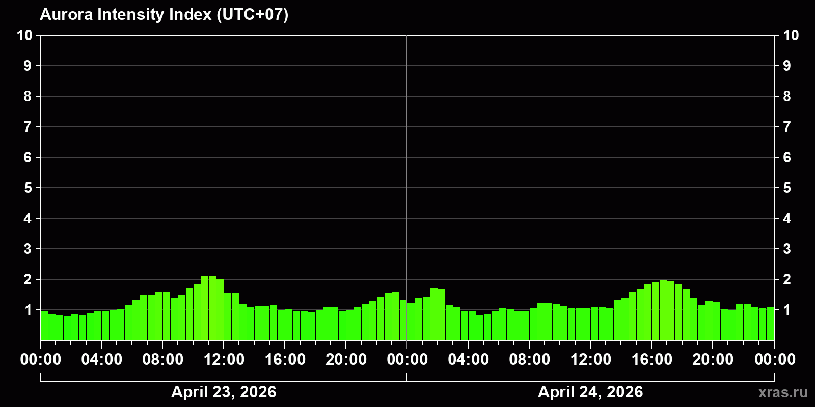 Auroras (northern lights) in Kemerovo — Apr 24, 2026