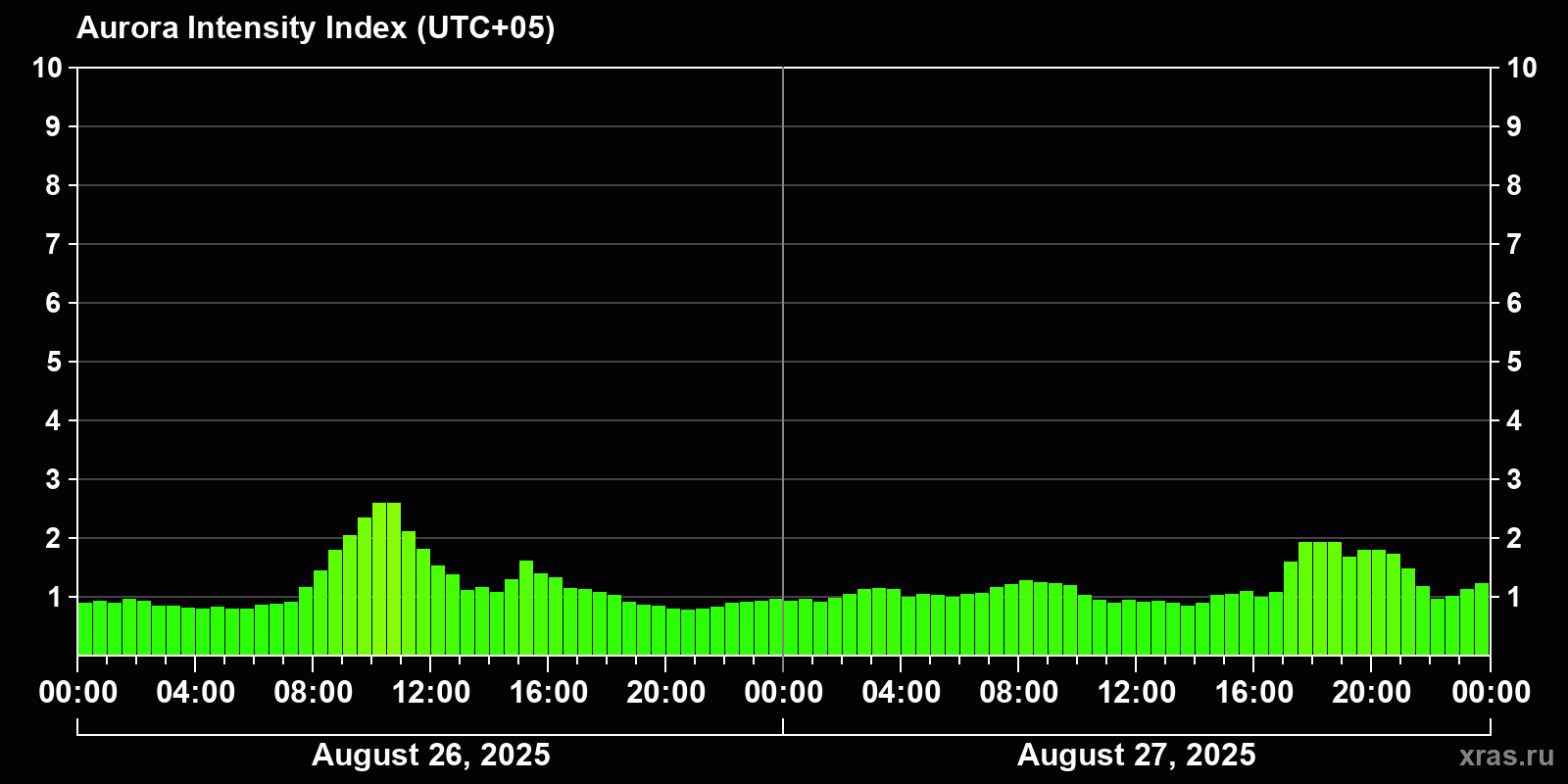 Auroras (northern lights) in Khanty-Mansiysk — Aug 27, 2025