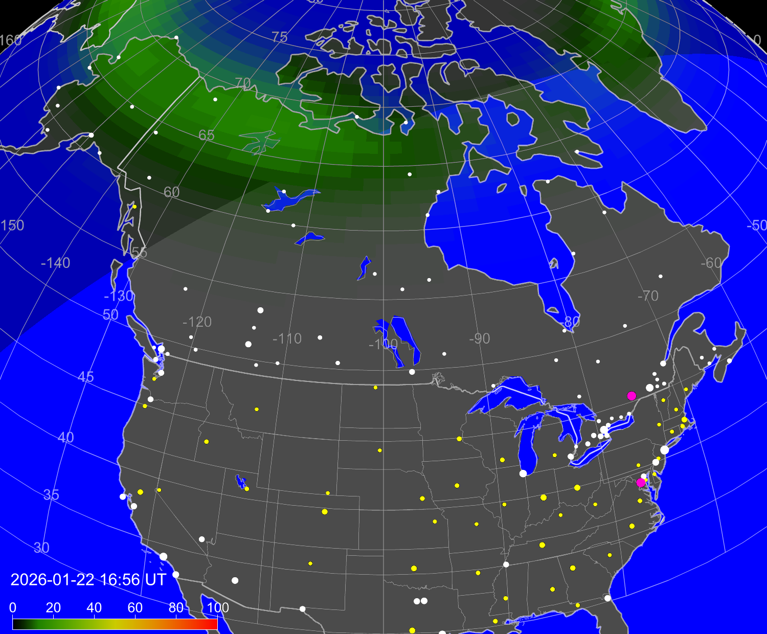 Вероятность полярных сияний в Кингстоне