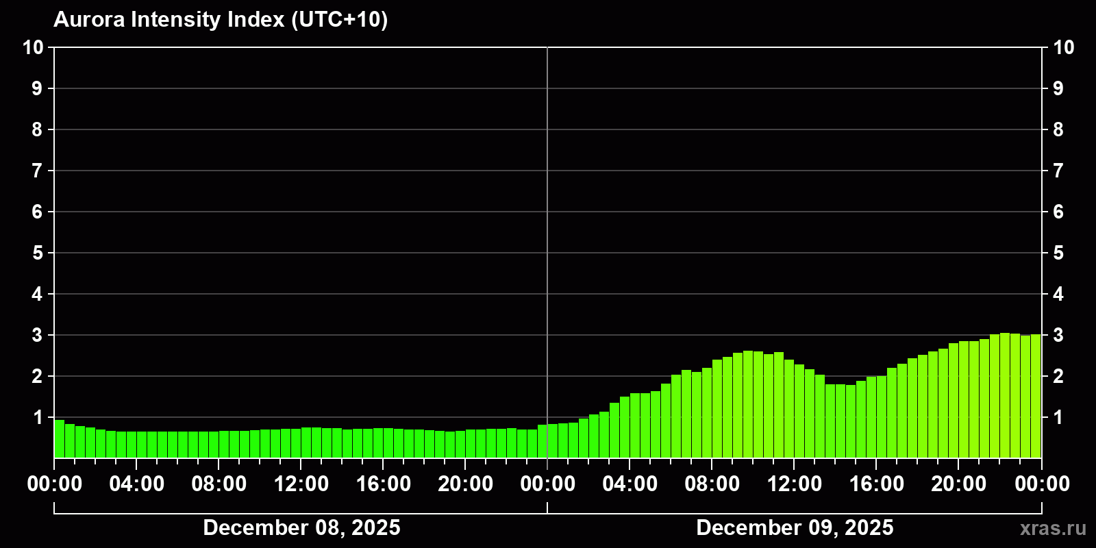 Auroras (northern lights) in Komsomolsk-on-Amur — Dec 09, 2025