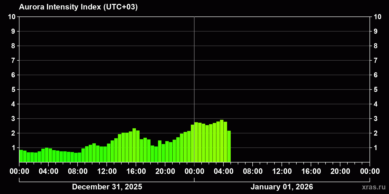 Auroras (northern lights) in Krasnodar — Jan 01, 2026