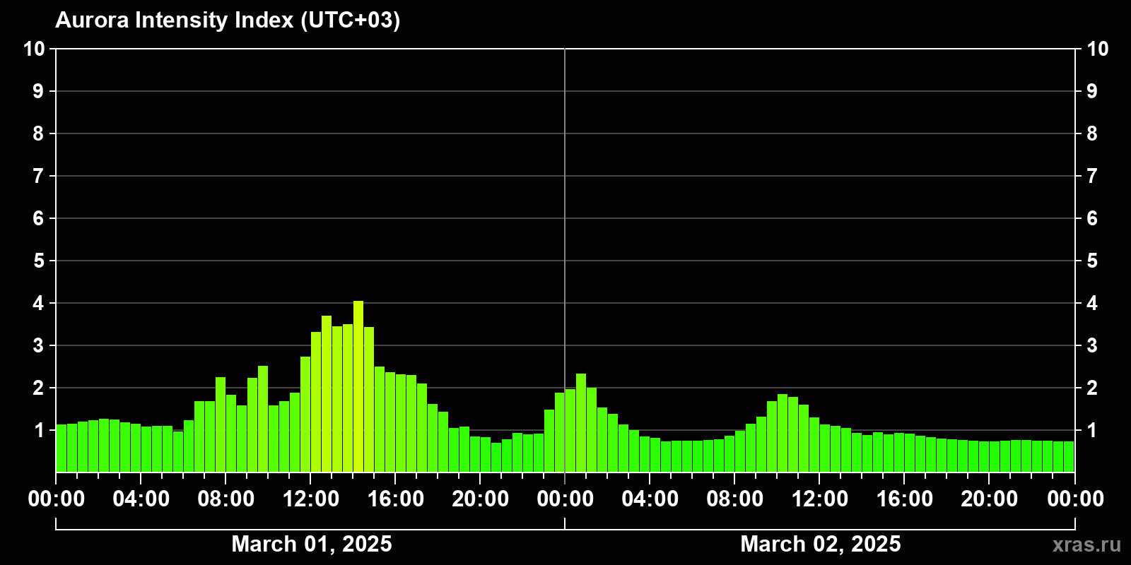 Auroras (northern lights) in Krasnodar — Mar 02, 2025
