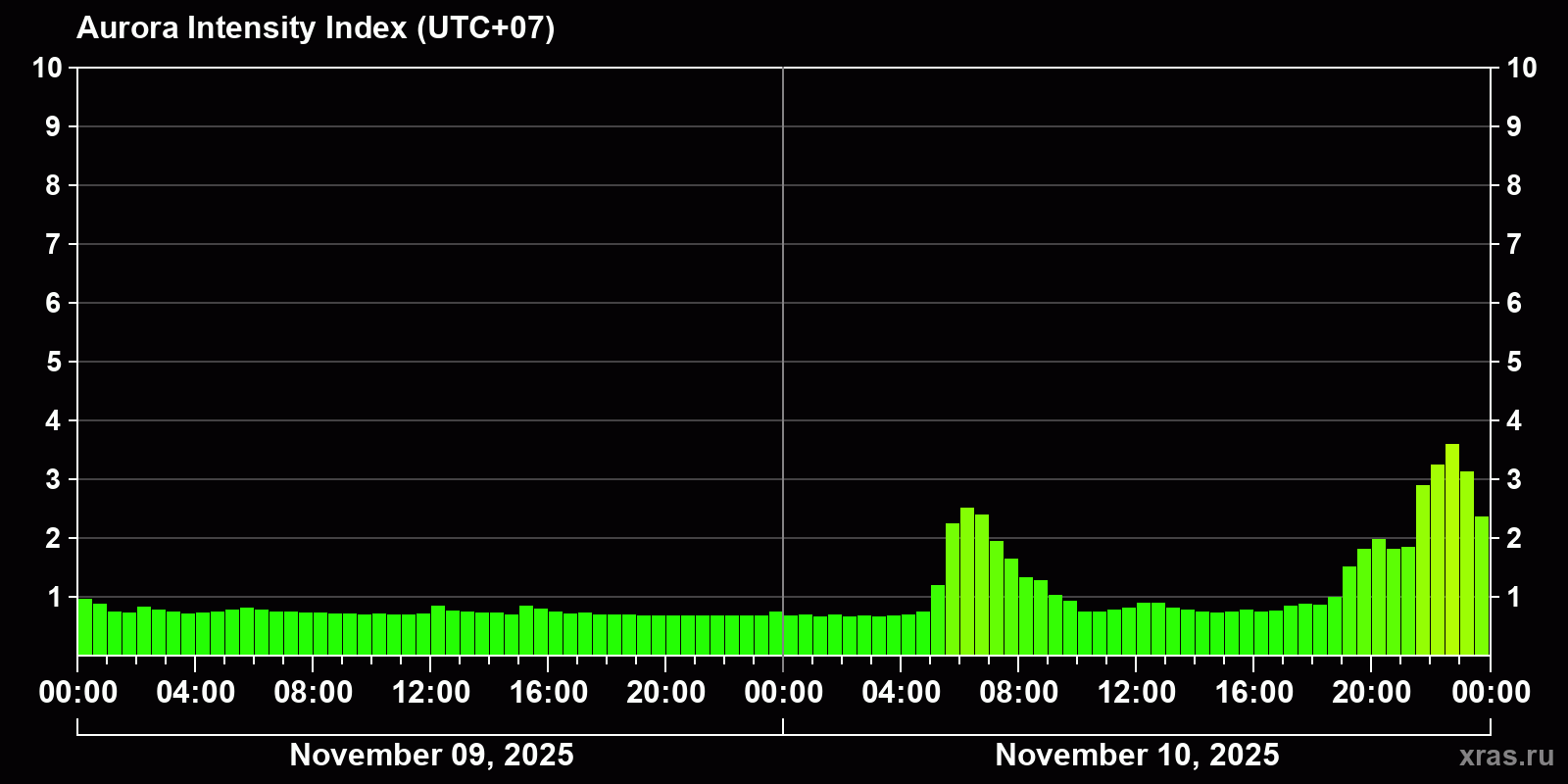 Auroras (northern lights) in Krasnoyarsk — Nov 10, 2025
