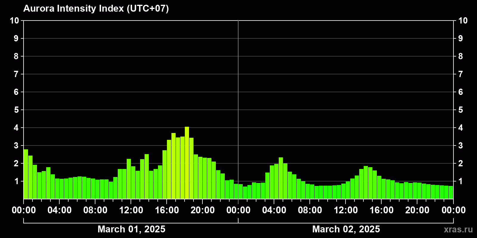 Auroras (northern lights) in Krasnoyarsk — Mar 02, 2025