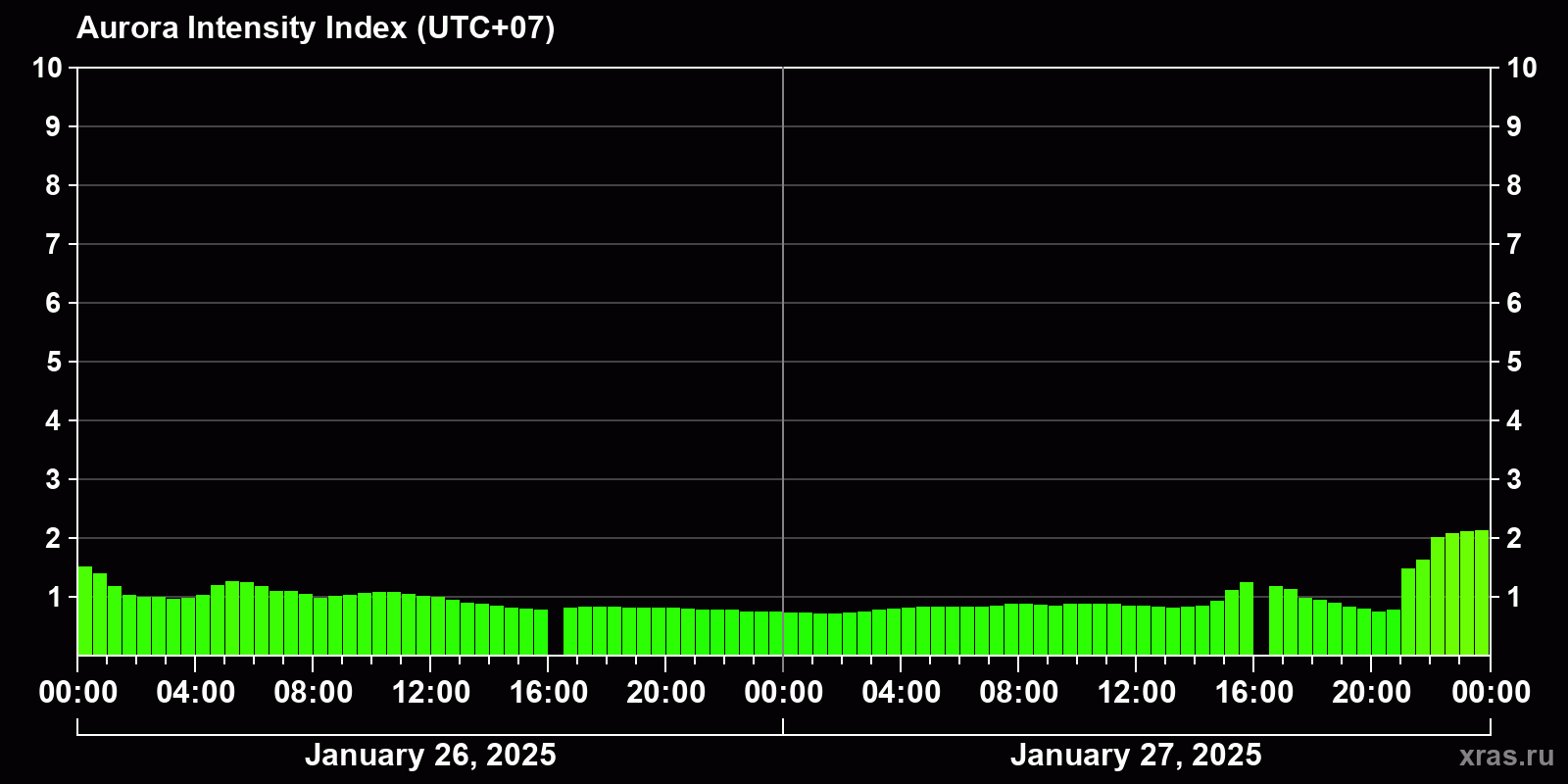 Auroras (northern lights) in Krasnoyarsk — Jan 27, 2025