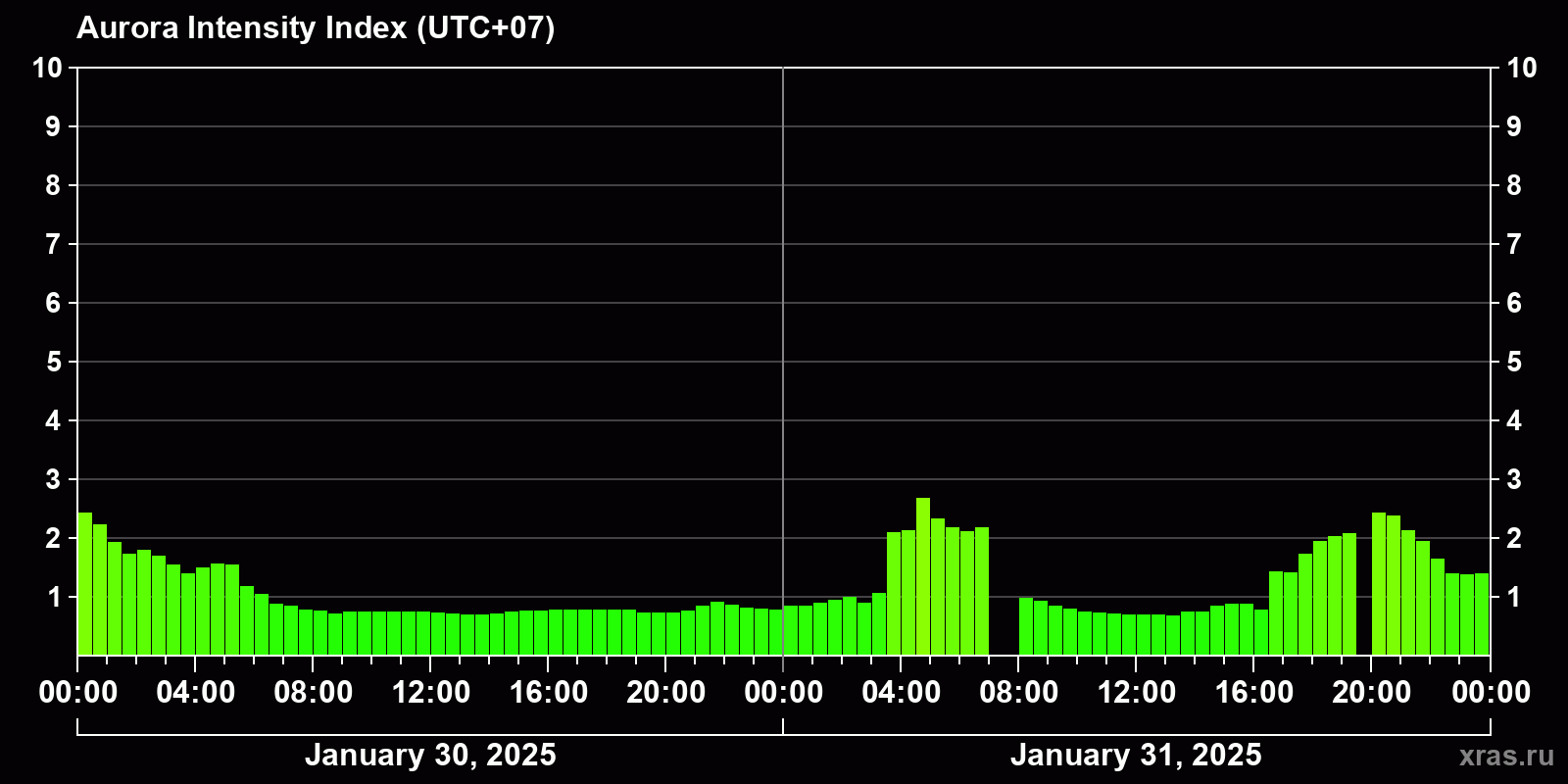 Auroras (northern lights) in Krasnoyarsk — Jan 31, 2025