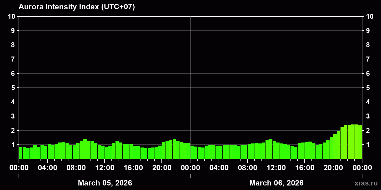Auroras (northern lights) in Krasnoyarsk — Mar 06, 2026