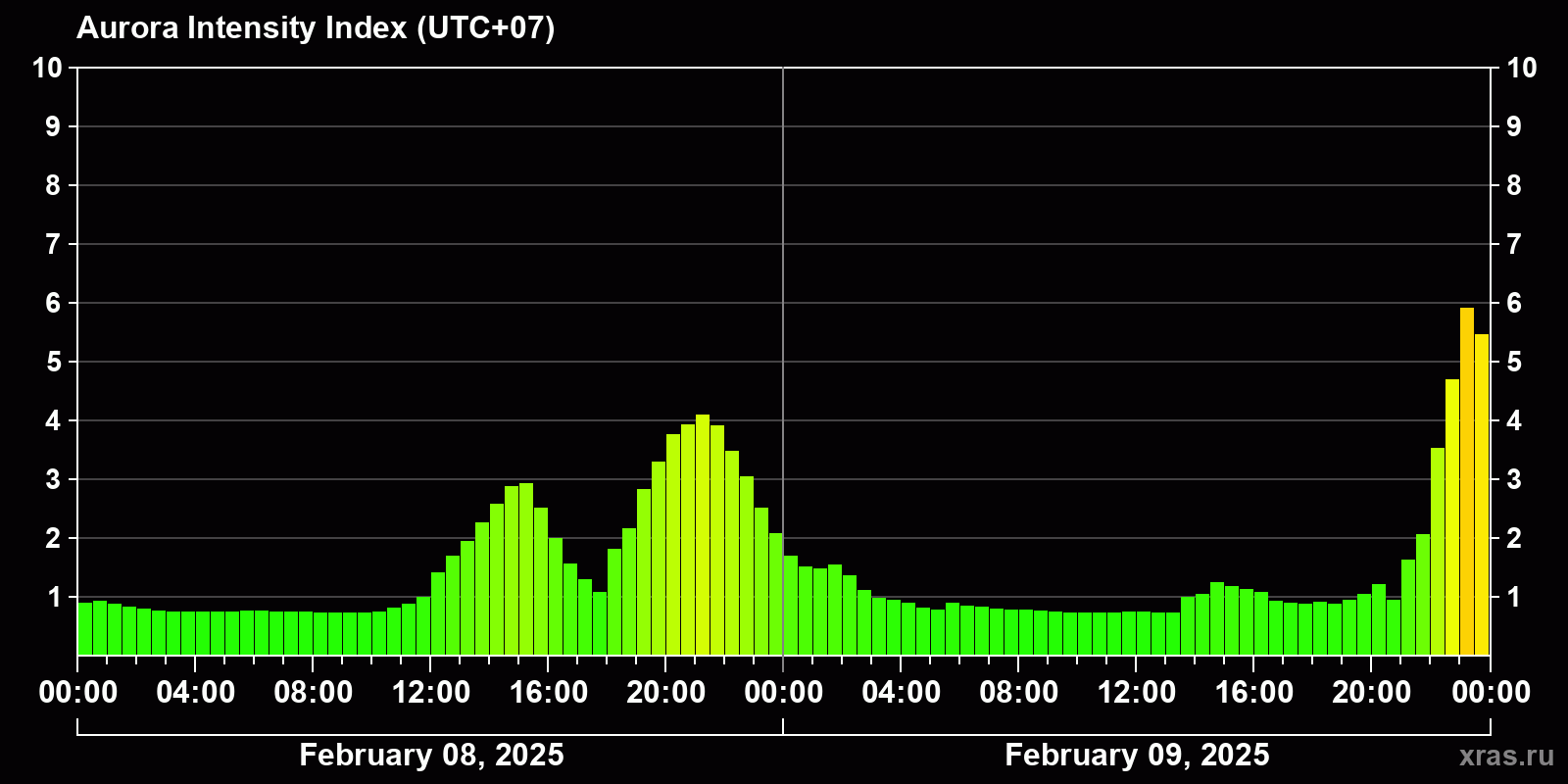 Auroras (northern lights) in Krasnoyarsk — Feb 09, 2025