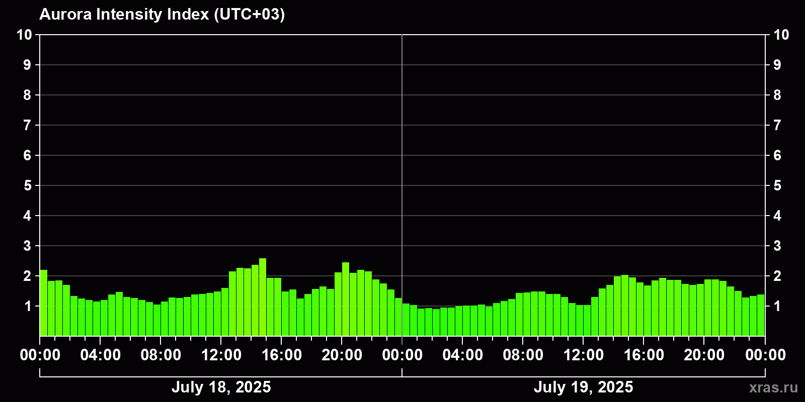 Changes in the auroral intensity index from 2025-07-18 to 2025-07-19 local time