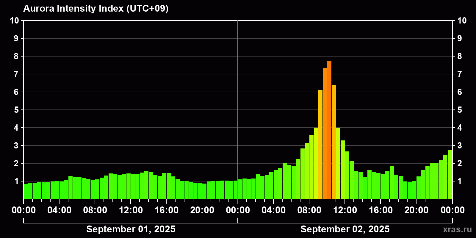 Auroras (northern lights) in Lensk — Sep 02, 2025