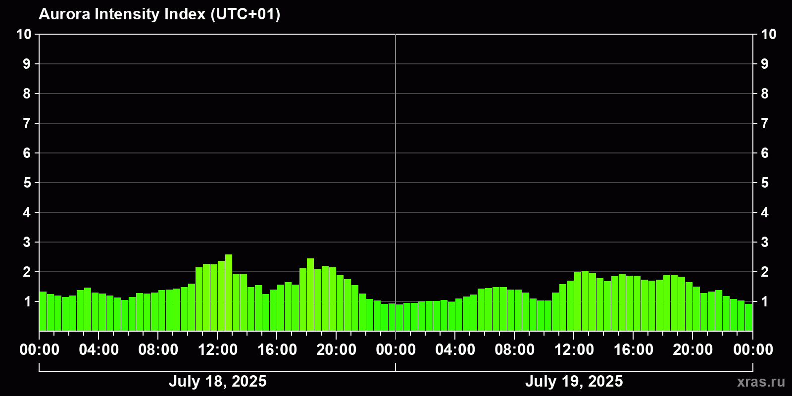 Changes in the auroral intensity index from 2025-07-18 to 2025-07-19 local time