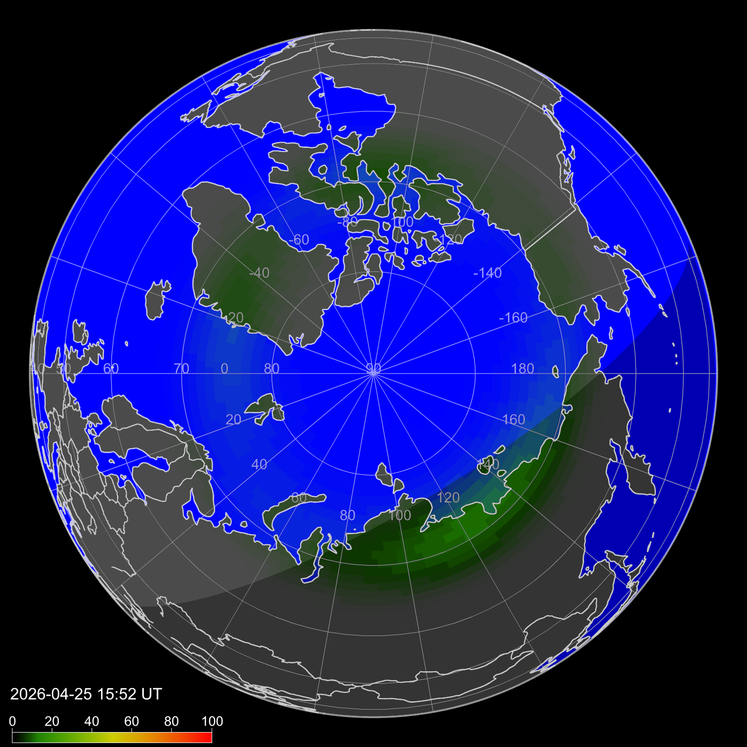 Probability of northern lights in London