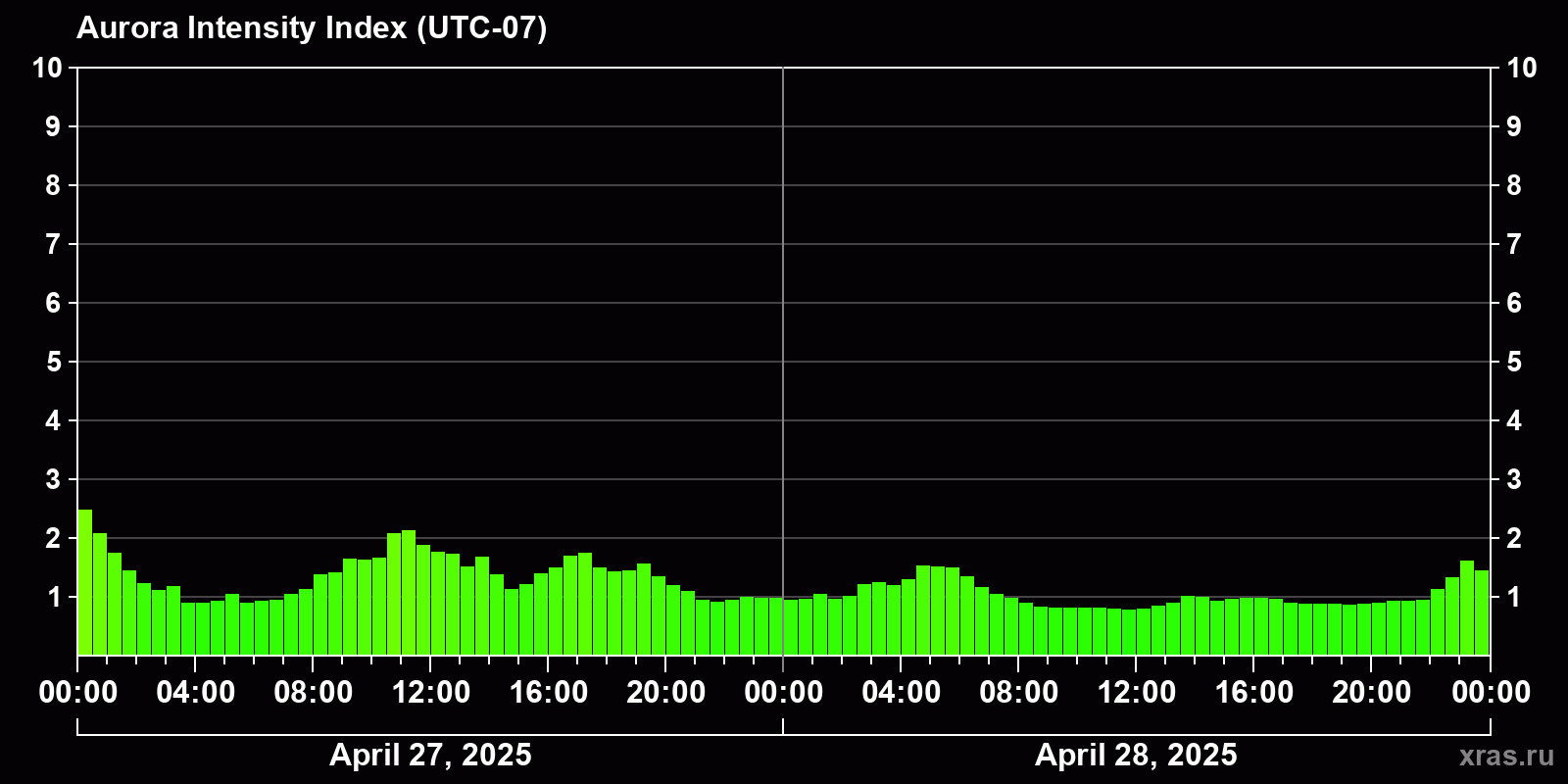 Changes in the auroral intensity index from 2025-04-27 to 2025-04-28 local time