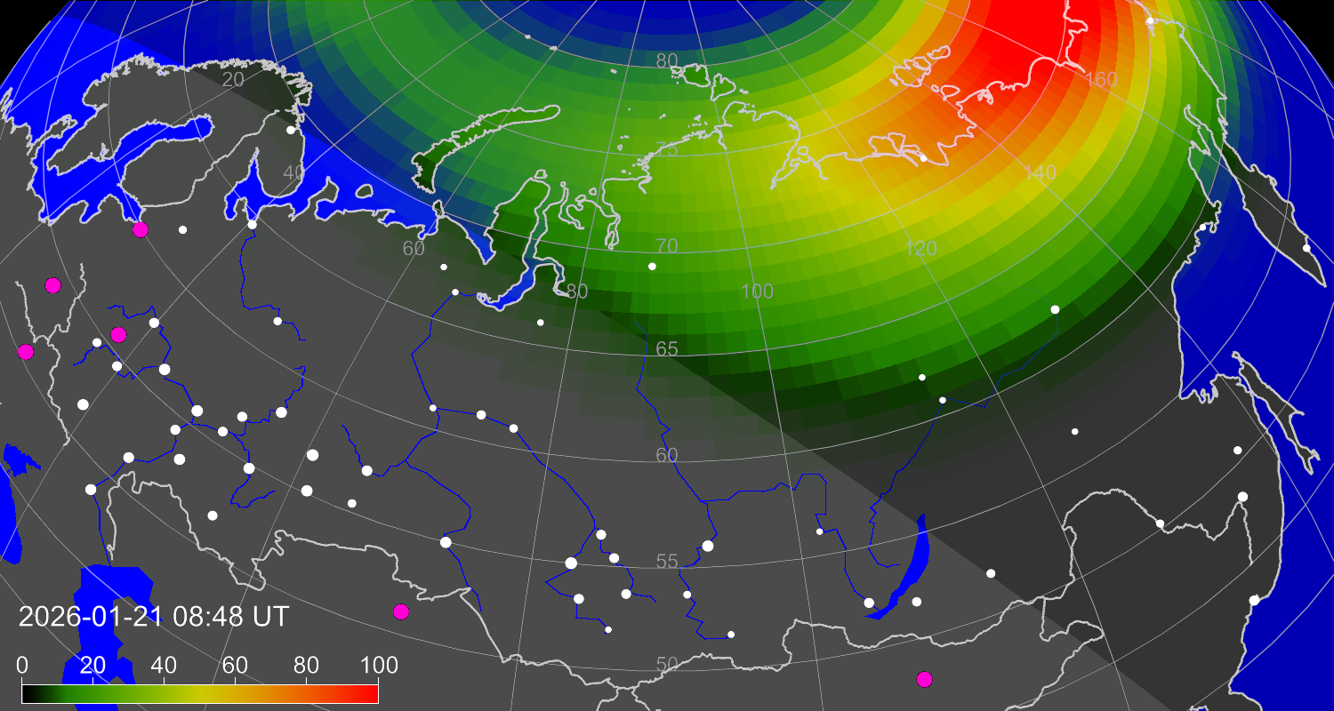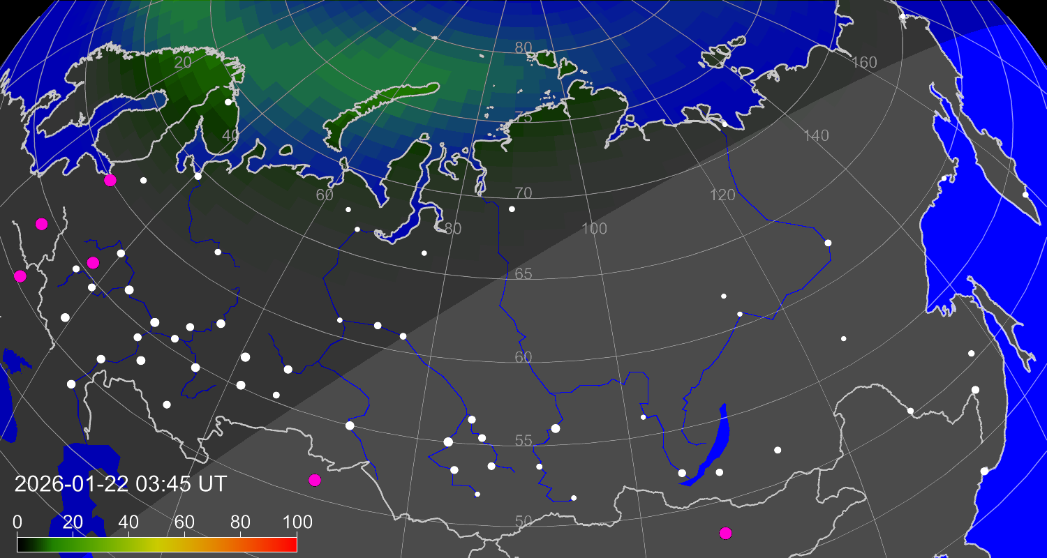 Зона полярных (северных) сияний над территорией Евразии