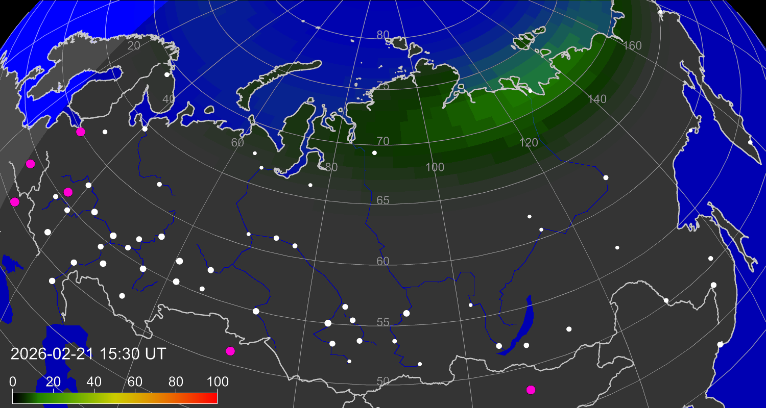 Зона полярных (северных) сияний над территорией Евразии