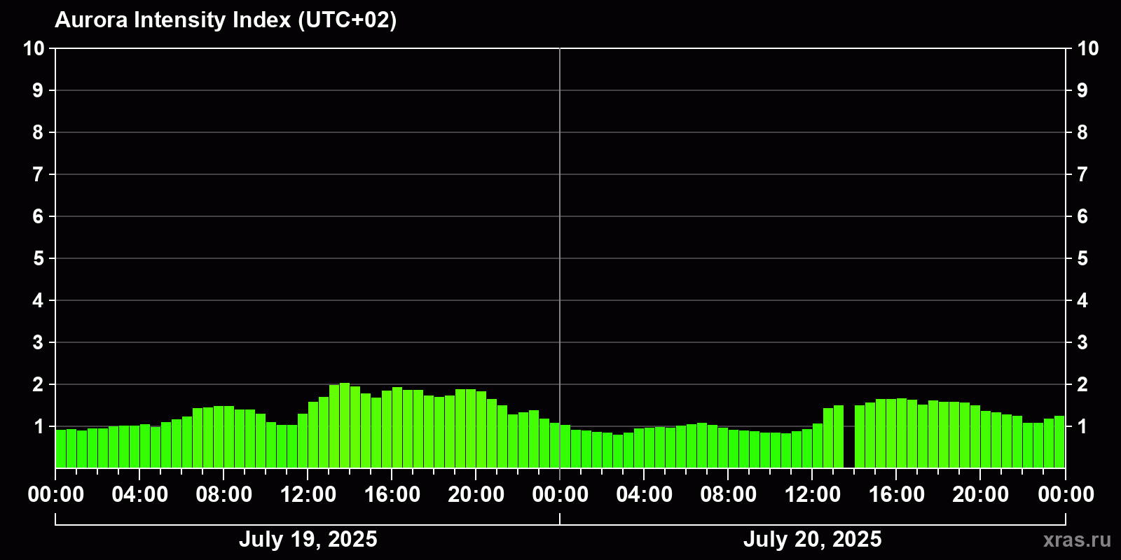Changes in the auroral intensity index from 2025-07-19 to 2025-07-20 local time