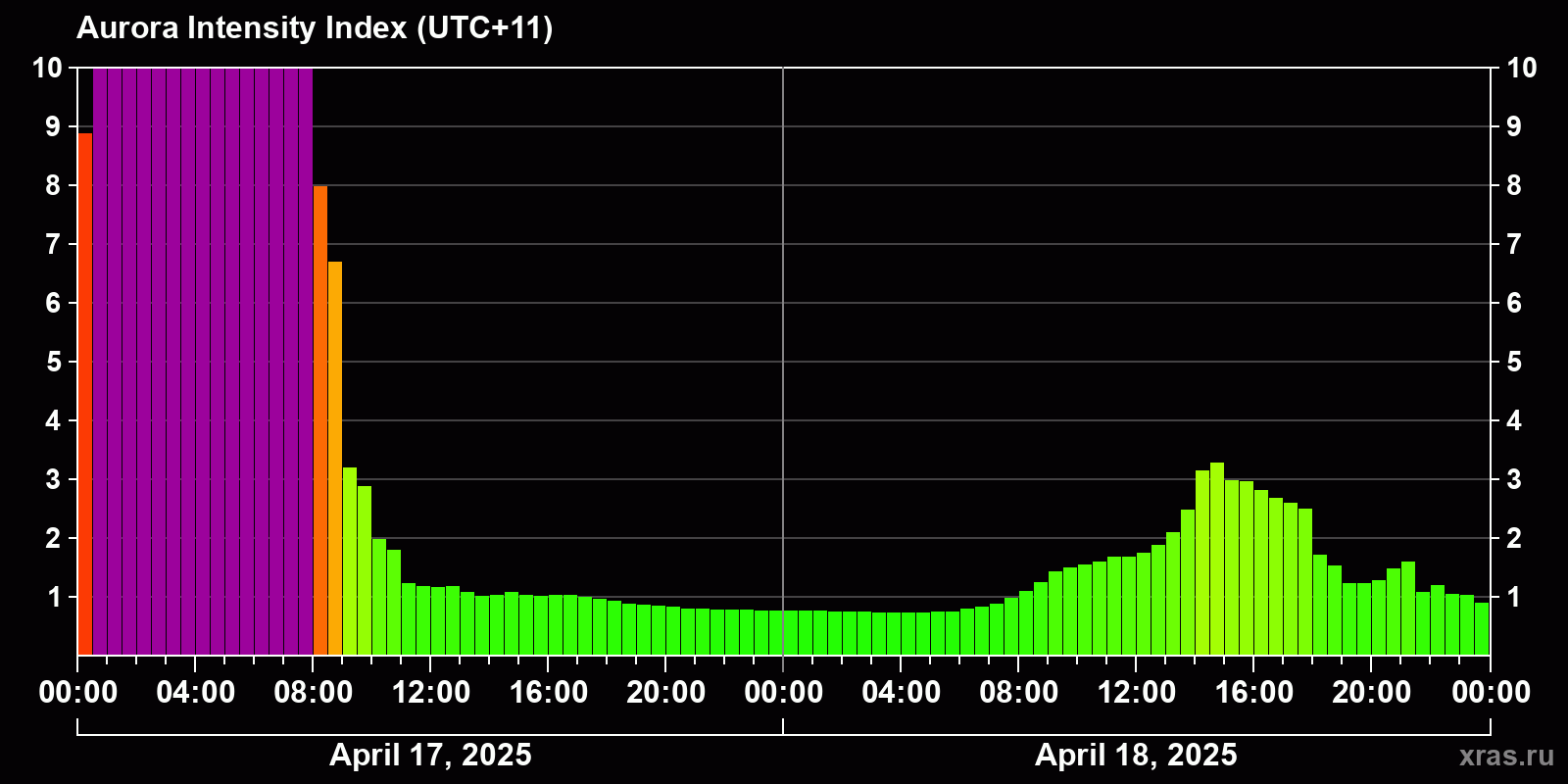 Changes in the auroral intensity index from 2025-04-17 to 2025-04-18 local time