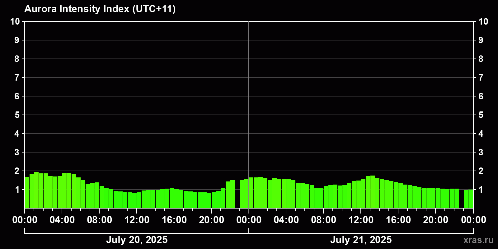 Changes in the auroral intensity index from 2025-07-20 to 2025-07-21 local time