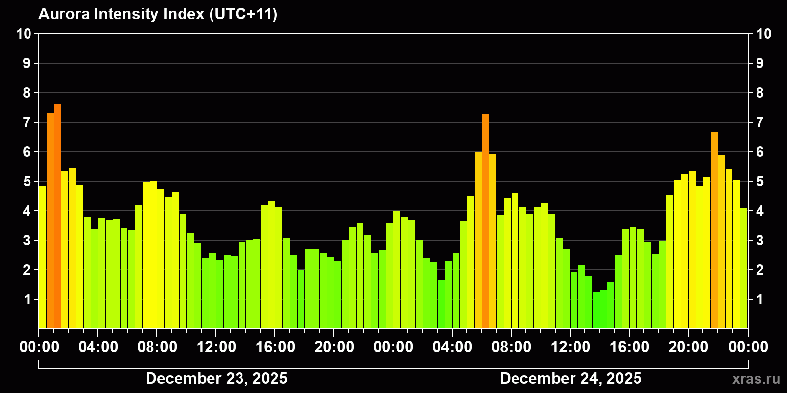 Auroras (northern lights) in Magadan — Dec 24, 2025