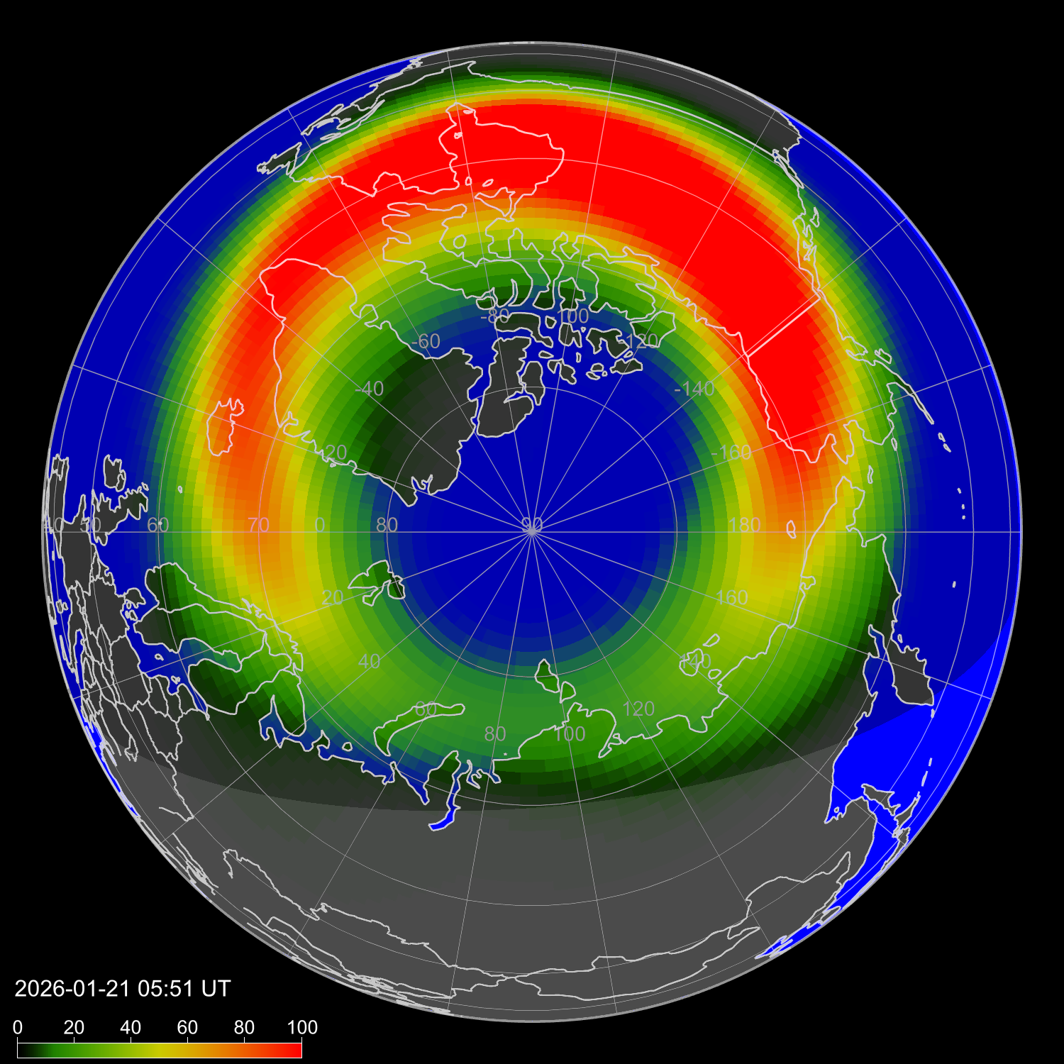 Зона полярных сияний в северном полушарии